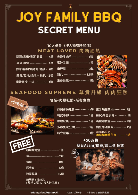 無論是家庭聚會還是大型派對,都能滿足客人的需求,Joy Instant 致力為客人提供優質燒烤體驗。